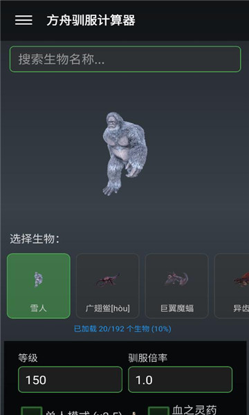根据恐龙种类、等级和食物类型,自动计算驯服所需时间和消耗量。
