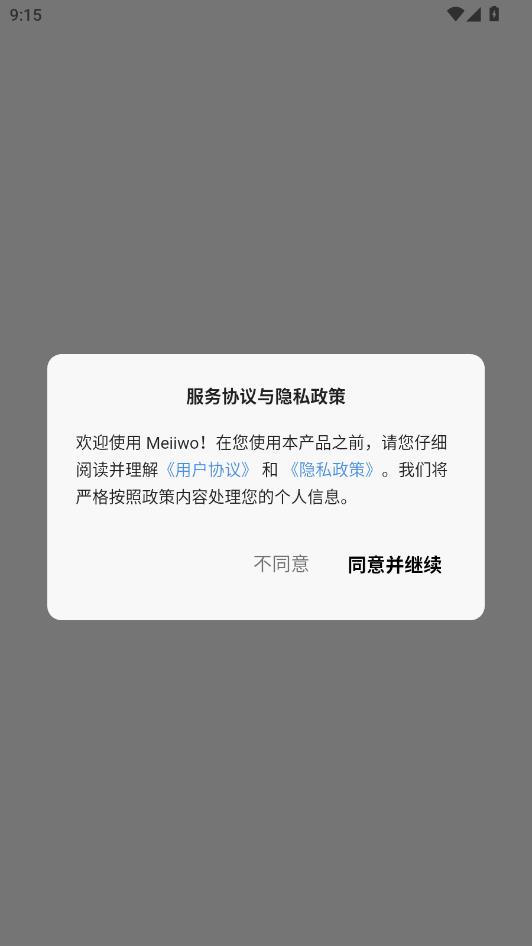 阅读服务协议与隐私政策,点击同意并继续。