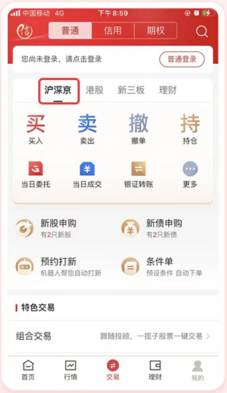 交易板块中原“沪深”子板块升级为“沪深京”子板块,其中支持上海交易所、深圳交易所、北京交易所、全国中小企业股转公司的交易功能。您可以在其中进行4个交易所的证券交易,持仓查询,交易记录查询等操作。