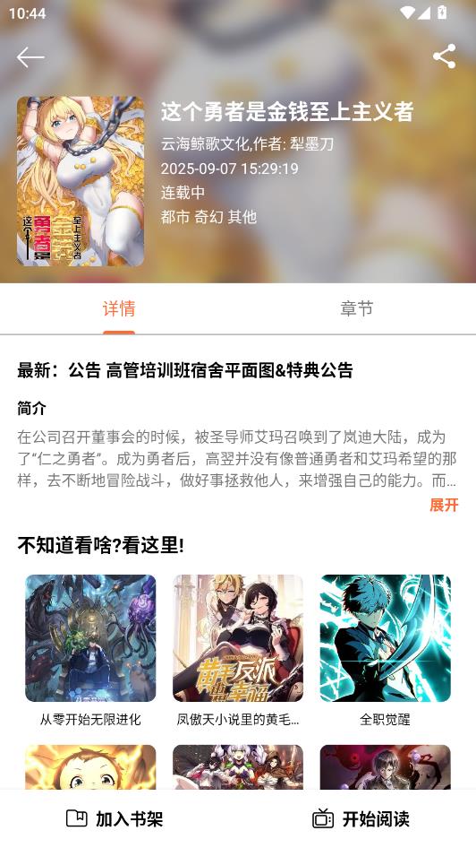 进入详情页面,选择开始阅读。