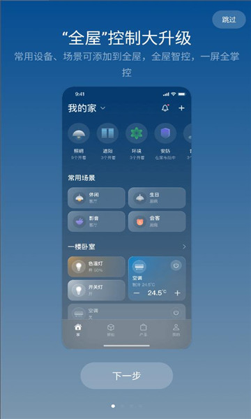 一键开关、调节亮度/色温、设置温度、查看状态,操作流畅直观