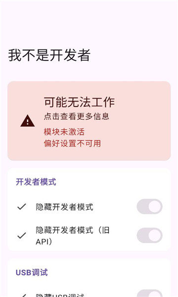 我不是开发者模块怎么用?这是一款轻量级的手机模块管理工具,无需root权限也可以实现应用安装,模块管理,主题设置,安全防护等一系列操作,界面也是比较简单的,只需要开启对应的功能按钮即可。