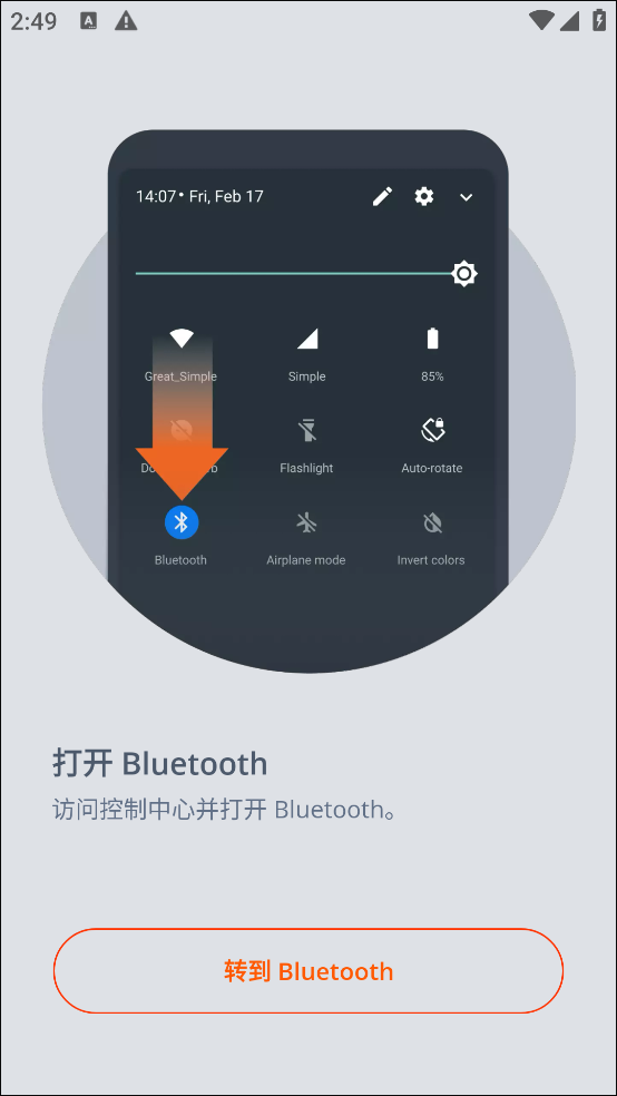 1、首次打开软件,会提示转到蓝牙设置。