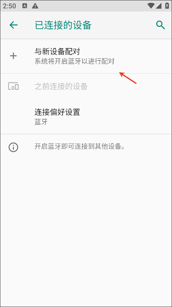 2、点击与新设备配对选项。