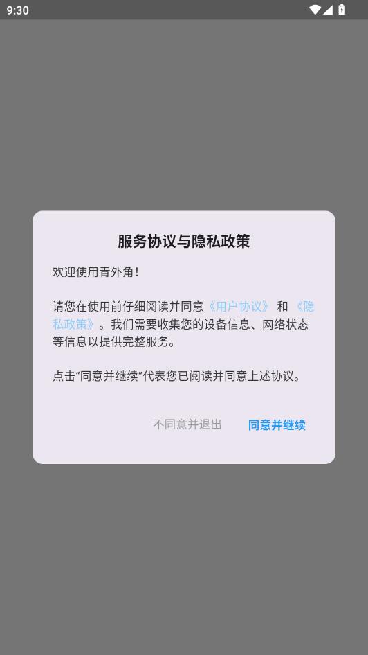 阅读服务协议与隐私政策,点击同意并继续。