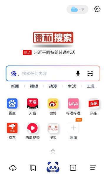 首页仅保留搜索框+常用网站快捷入口,无资讯流、无弹窗、无强制关注;