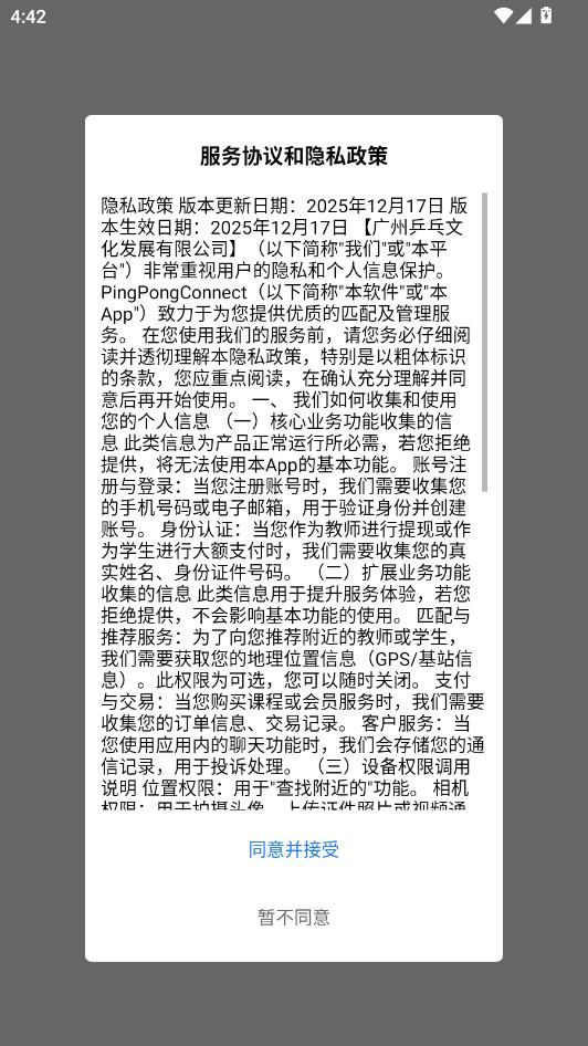 阅读服务协议和隐私政策,点击同意并接受。
