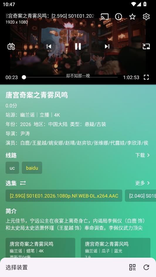 幽兰4k是款超高清画质支持的免费追剧平台,拥有最高4k的画质选择,满足不同网络情况下追剧需求,资源种类丰富多样,并且保持持续更新、上新,用户也可以通过换源的方式寻找更多的想看作品,拥有更强的自定义性。