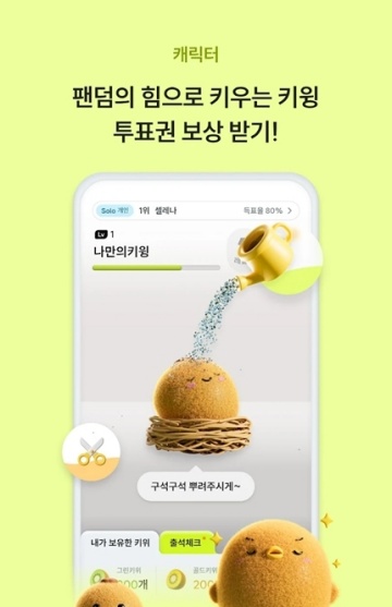 Kiwing是款官方授权的追星软件,提供了正版偶像内容以及应援通道,不仅可以掌握爱豆最新的动态信息,还有机会和爱豆向上互动聊天哦!同时还能领养"Kiwing"的小宠物,支持多种互动玩法。