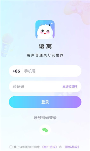 下载“语窝”app,使用手机号或第三方账号快速注册;