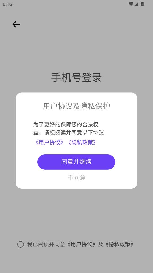 阅读用户协议及隐私保护,点击同意并继续。