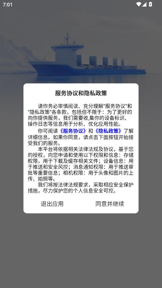 阅读服务协议和隐私政策,点击同意并继续。