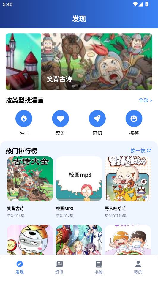 打开软件进入发现页面,这里提供了丰富的漫画作品。