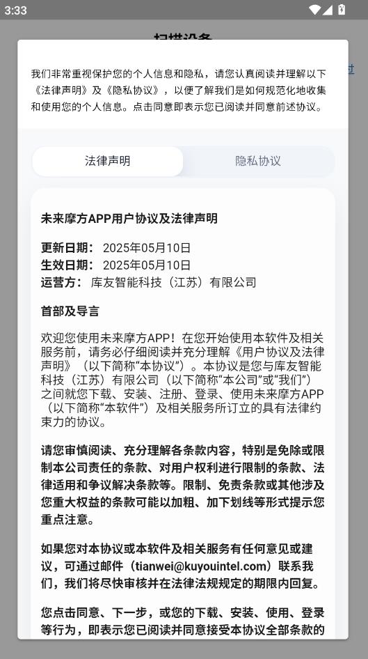 阅读用户协议,下拉点击确认。