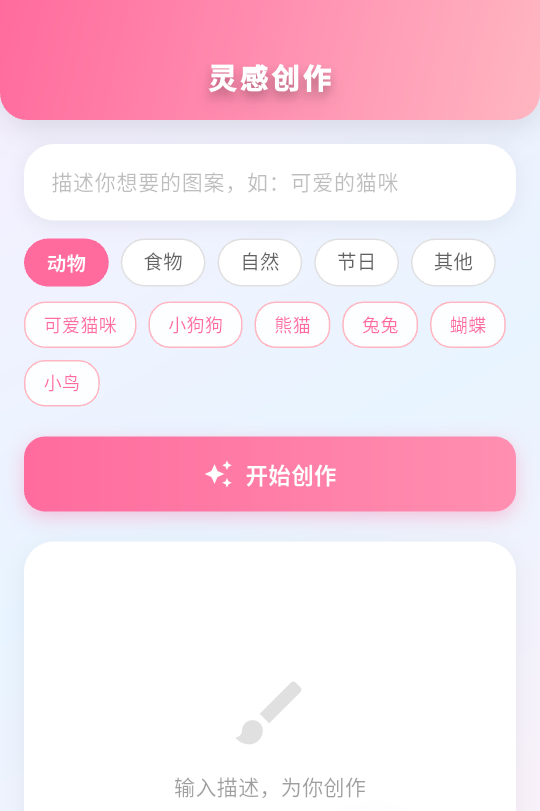 3、之后就可以在输入框中输入想要的图案,点击开始创作按钮。