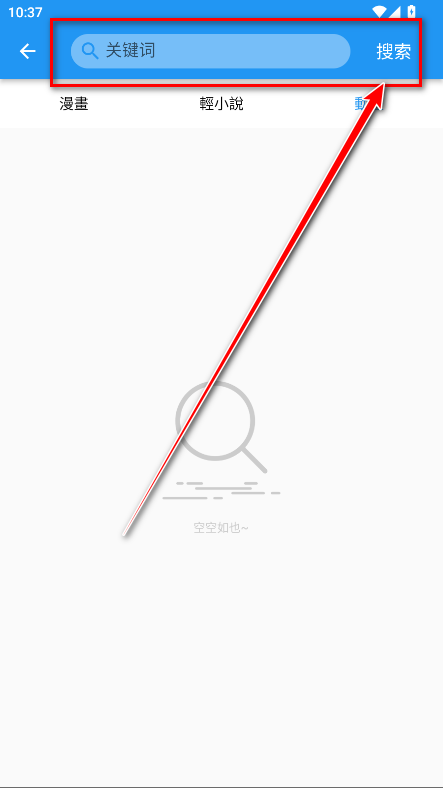 3.输入关键字,点击右边的搜索,即可找到我们想要的漫画、轻小说、动画资源。