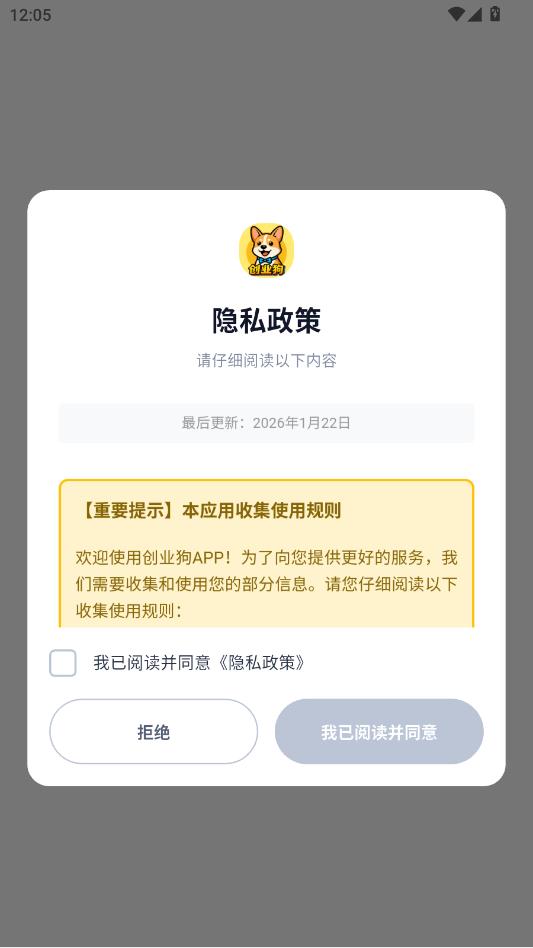 阅读隐私政策,勾选同意点击进入软件。