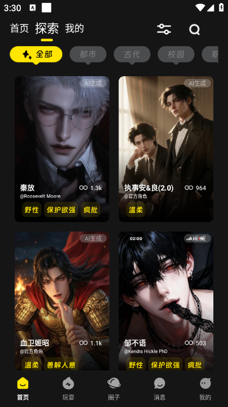 在软件首页的探索板块内,有不少AI角色可以选择。