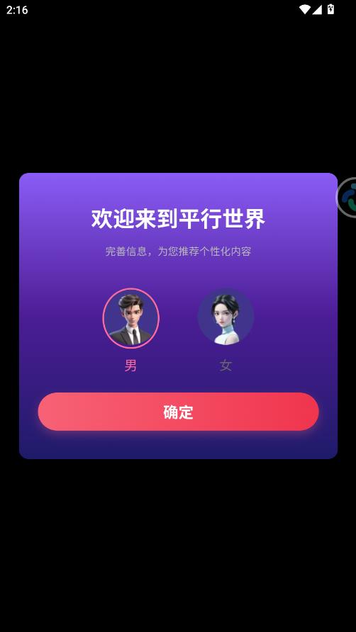 根据上方步骤完成注册登录后,选择自己的性别。ps:很重要哦!