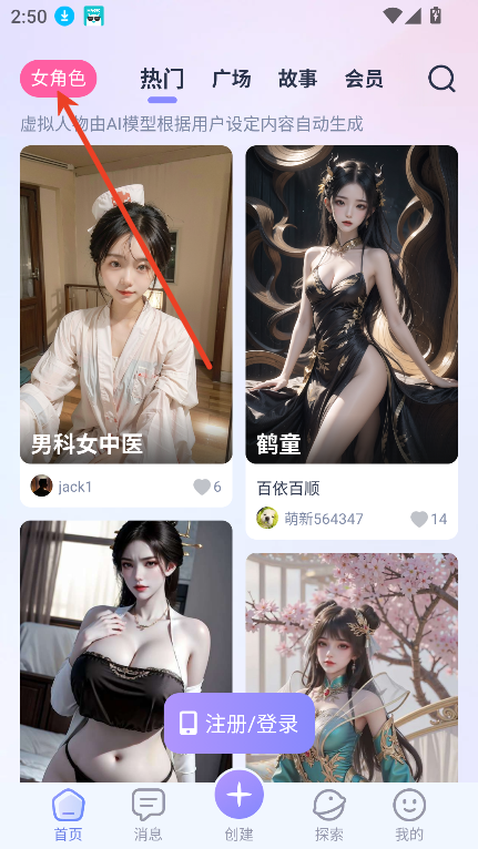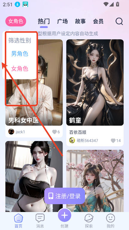 选择喜欢的角色性别点击确定,可以进入软件后更改,无需担心选错。