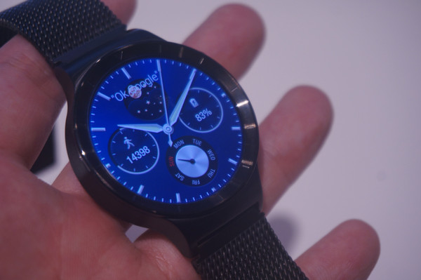 而拿在手上来看的体验与参数相符,表盘显示内容即使是文字也没有明显的颗粒感,相比我们更熟悉的Moto360有着非常明显的提升。