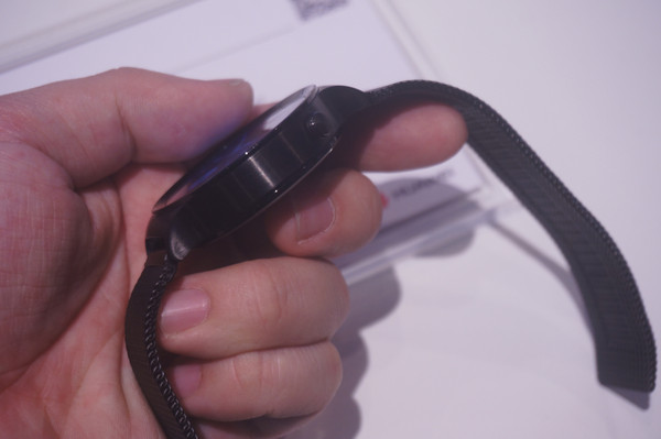 初次上手华为Watch让笔者有种见到LG G watch R的感觉,同样的下沉式屏幕同样的刻度设计,仔细再看,还真的是很像!不过标准款下黑色的编织布表带要比LG的智能手表上标配的那根质感要好。