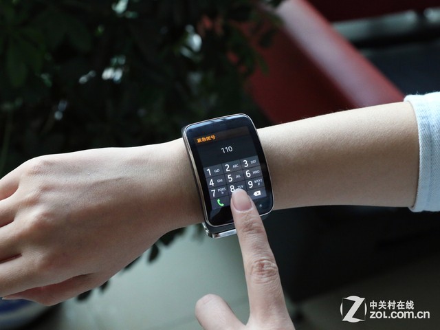 前面我们提到三星Gear S是一款独立的穿戴设备,这也就意味着我们可以将它当做手机来使用,比如首先它内置3G网路模块,我们可以使用内置SIM卡实现完整的电话拨打、短信接收,更厉害的是在这块小小的屏幕上三星还为之设计了中文九宫格和英文全键盘,方便我们必要的时候回复短信、邮件等。
