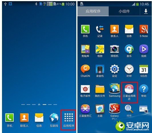 1.在主屏中,点击【应用程序】,再点击【三星应用商店】。