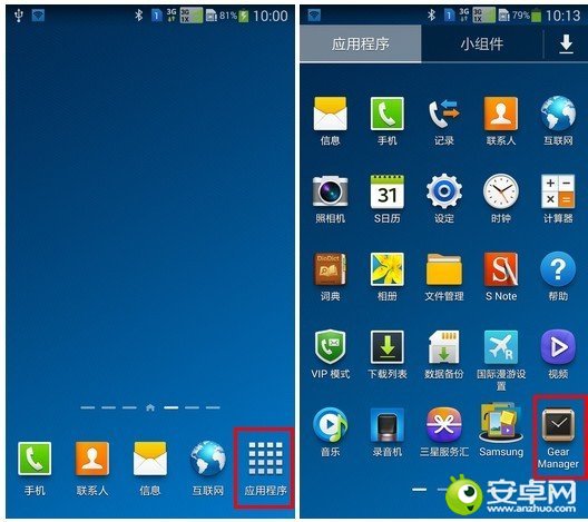在主屏中,点击【应用程序】,再 点击【Gear Manager】。