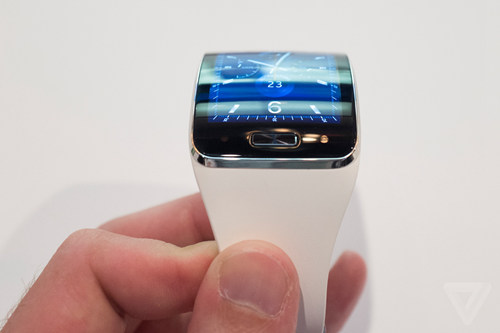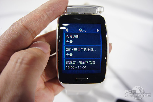 这一次Gear S继续Gearfit的曲面风格,将曲面进行到底,采用曲面的优势在于可以大大的增加屏幕的面积,同时又能更贴合手腕,总觉得比apple watch数字表冠的解决方案略胜一筹,毕竟手指的直接操作速度和精度比较高。
