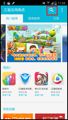 2.点击【三星应用商店】。(注:登陆三星应用商店需要开启手机移动数据或WLAN)
