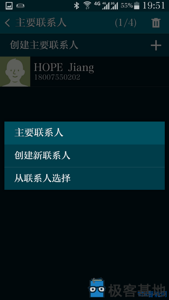 同时还得进入“管理主要联系人”,来增加遇到紧急情况时,要把求助信息发到哪个手机上。可以自行录入电话号码,也可以从手机的联系人中选择,最多可以选择4个。