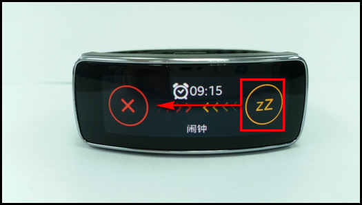 3、从右向左滑动Gear Fit屏幕即可实现延迟闹钟功能。