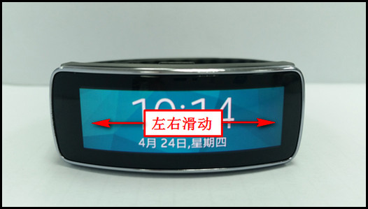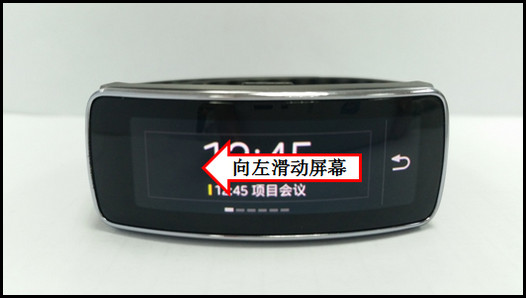 1、在Gear Fit待机页面,从右至左(从左至右)滑动屏幕。