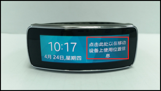 6、在Gear Fit的主屏幕中,点击右侧的【点击此处以在移动设备上使用位置信息】。