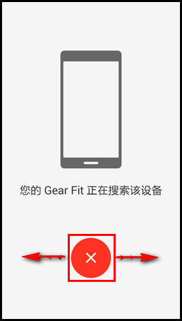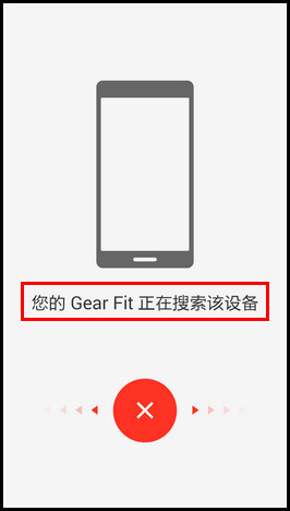 4、此时绿色图标变为红色,手机会发出铃声与振动,并弹出“您的Gear Fit正在搜索该设备”。