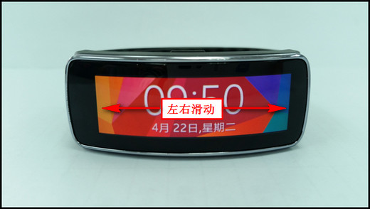 1、在Gear Fit待机页面,从右至左(从左至右)滑动屏幕。