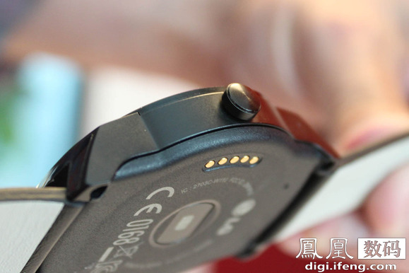 其他硬件方面,LG G Watch R采用了Android Wear平台标准的配置,如1.2GHz的高通骁龙400处理器、512MB RAM+4GB ROM内存配置,支持IP67防水(1米水深浸泡30分钟),内置心率监测器,电池容量则为410mAh。不过,LG并没有为其配备无线充电功能,而是需要通过一个专用的底座及USB线缆来实现充电。