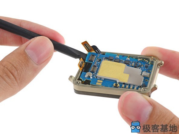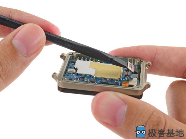 显示屏粘合在手表的前面,使得屏幕的替换有点困难。