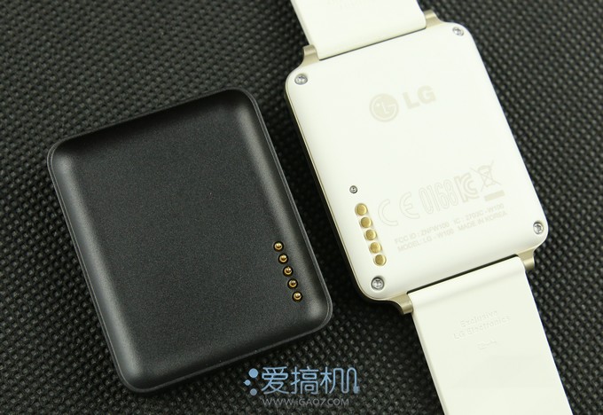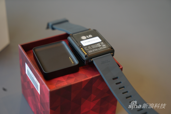 附送的底座可以给G Watch充电,对应手表底部的五个金属触点▼