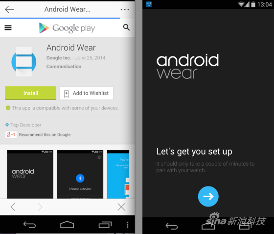 需要安装Android Wear应用与手表相连