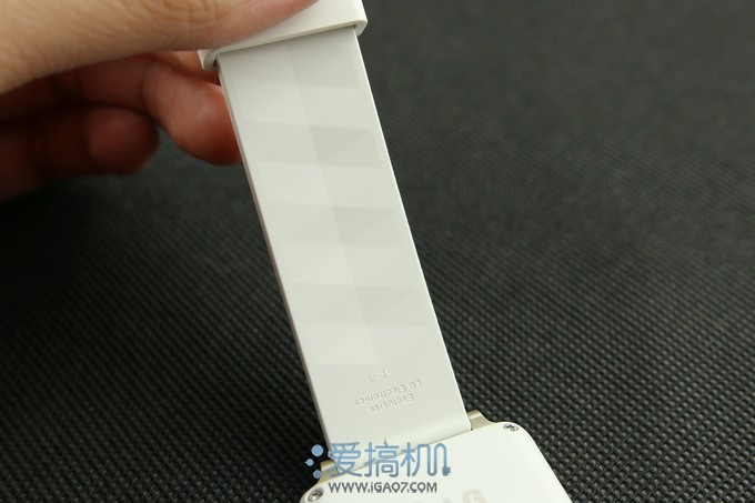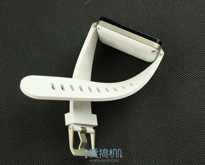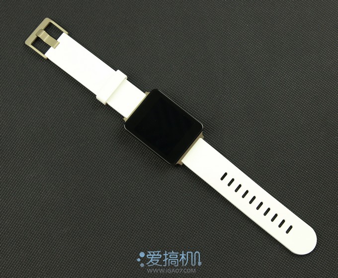 我们拿到的是港版白色的G Watch,表盘黑色,表带白色,配以金属的扣具▼