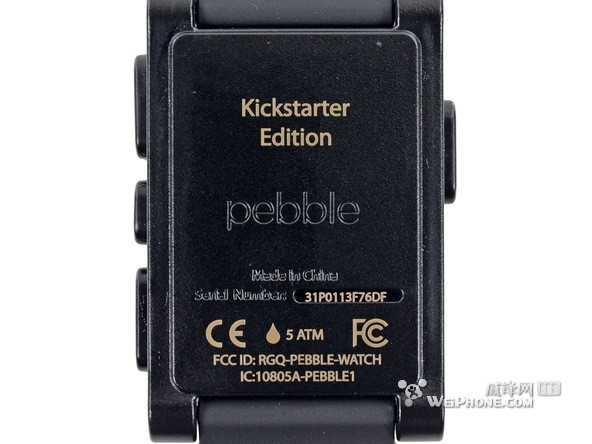 - Pebble 背后有 Pebble 和 Kickstarter Edition 字样。