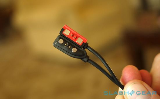 Pebble Steel表盘的左下角还设有三色LED,能够显示手表的充电状态。充电器本身也改良了,充电头更小,磁性更强,能够更有效地防止意外的掉落,曾有一些Pebble用户投诉这一点。产品专员(product evangelist)Myriam Joire告诉我们,Pebble正在考虑可能把充电器头的设计交给其他的可穿戴设备制造商,这样就能使充电器头有一个共同的标准,减少消费者携带的数据线数量。