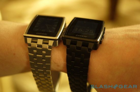 Migicovsky告诉我们,Pebble在发布新款手表前还有点犹豫,团队没能最终决定发布哪一种款式,所以银色和黑色版本都有,而且连表带也有不同的版本。顾客最终赢了,Pebble给Pebble Steel设计了两款表带,一款是钢带,另一款是黑色皮带。