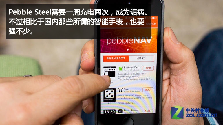 Pebble Steel另一大特点是升级的Android/iOS应用和新的应用商店。笔者虽然还未测试到Android版,但新版iOS应用要比原版强多了。应用商店的表现也挺好——你可以快速找到新的应用和表盘界面,并把这些内容发送到Pebble身上。
