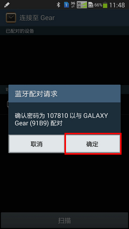 4、点击手机上的【确定】按钮,并且点击Gear上的【对钩】。