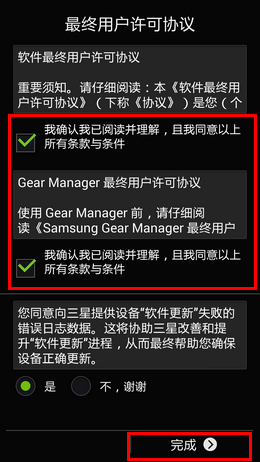 5、在移动设备中,阅读完协议后,勾选所有条款,并点击【完成】。
