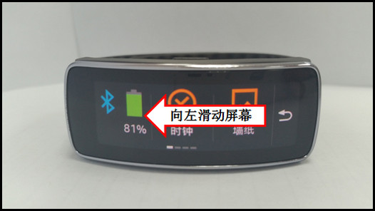 1、在Gear Fit待机页面,从右至左(从左至右)滑动屏幕。