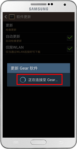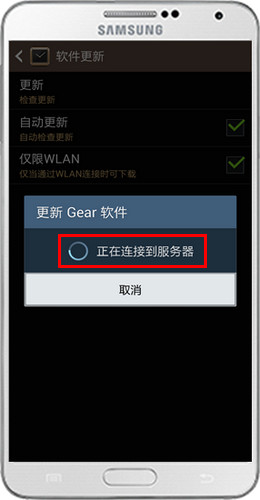 8、手机将连接到服务器并检查Gear的软件更新,下载的更新将复制到Gear中。(提示:通过移动网络下载可能会导致额外费用)
